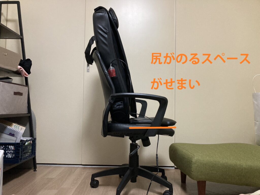 マッサージシートの背もたれ部分の厚みもあるので、座面が狭くなる。